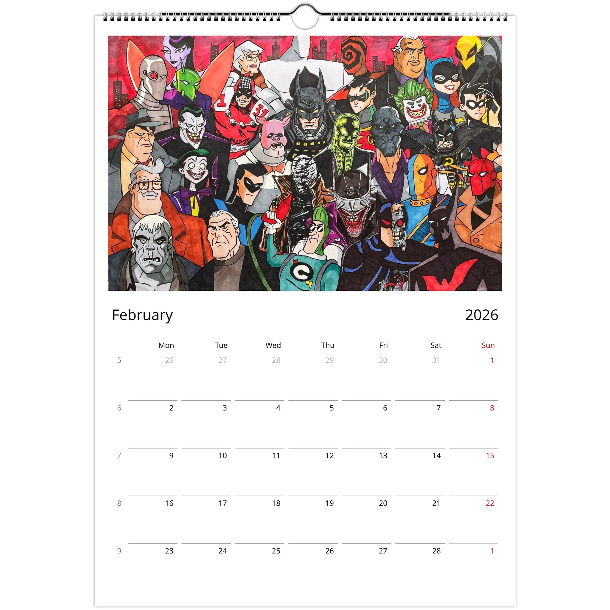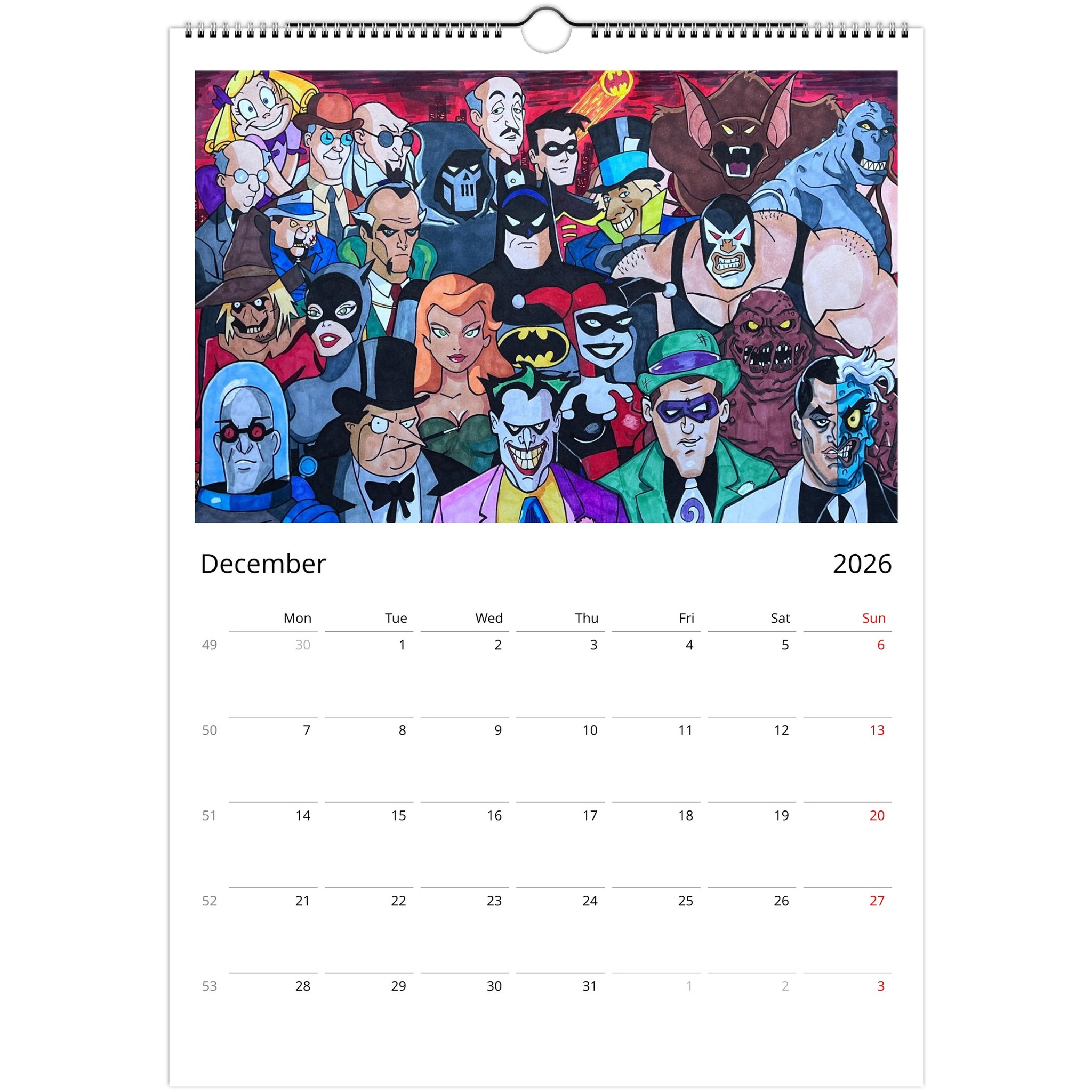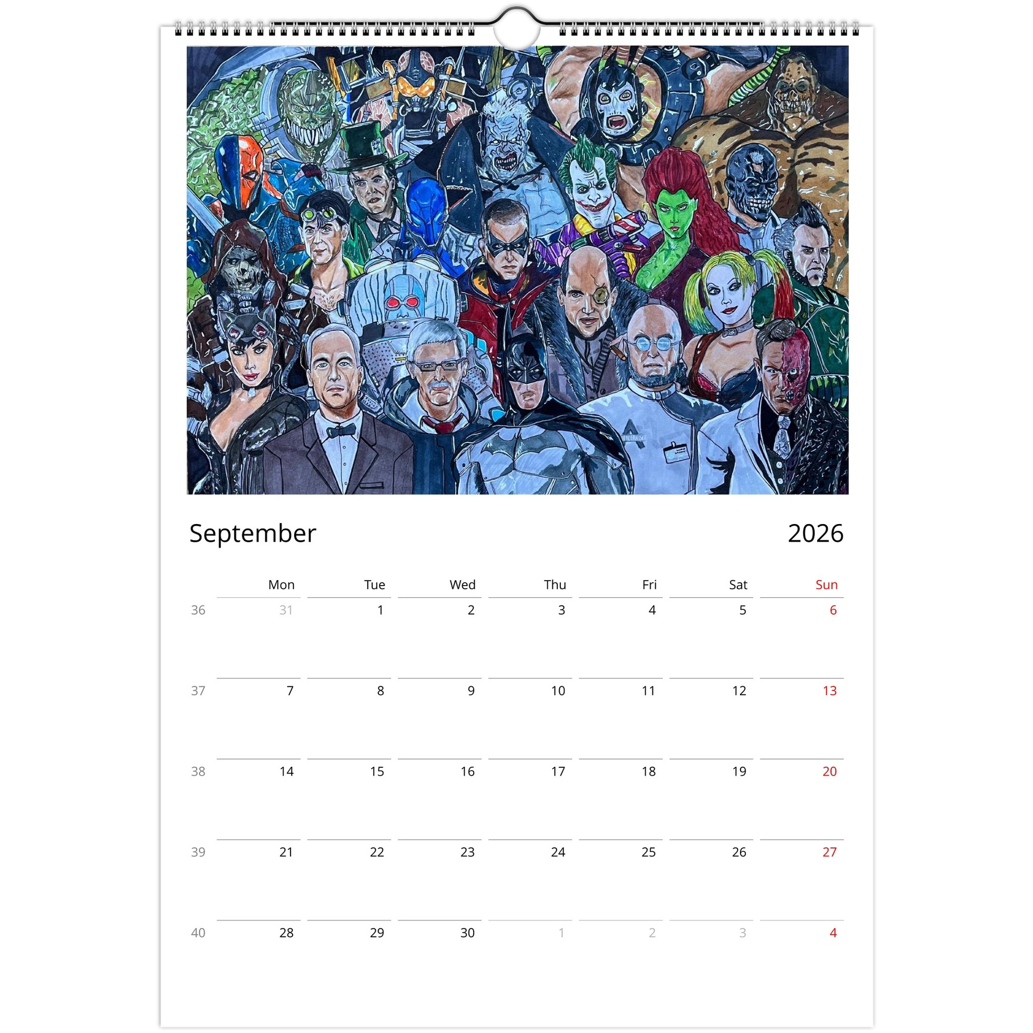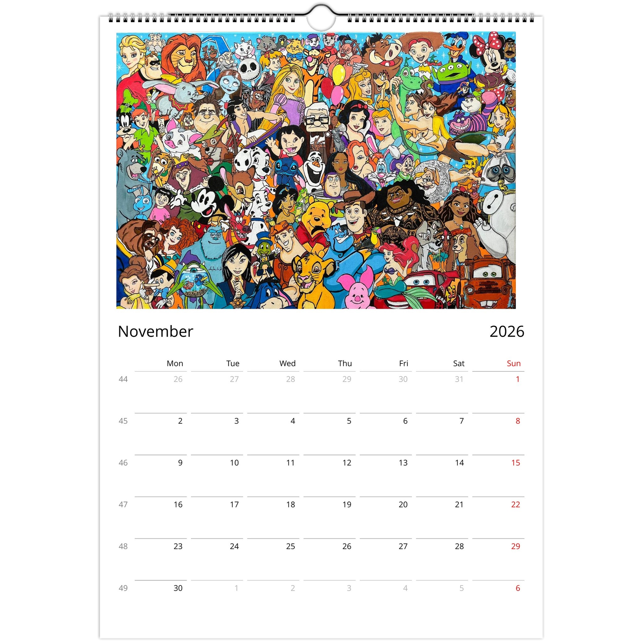 Introducing our Unique Wall Calendar featuring 12 eye-catching posters that showcase your favorite characters from Marvel, Disney, The Simpsons, and classic retro cartoons. Each month presents a stunning piece crafted from our beloved designs showcased on social media, now collected for your viewing pleasure!